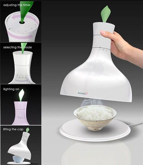 icrowave Vase看上去像個花瓶,其實它是一個微波烤箱,放在桌上既能當裝飾品,也能迅速的對食物進行烘烤。在需要對食物烘烤加工時,只需要將食物放置進去,設置好時間即能自動運行。最有意思的是,當食物熱好后,花瓶頂部葉子會變綠提醒用戶食物已經加溫好。